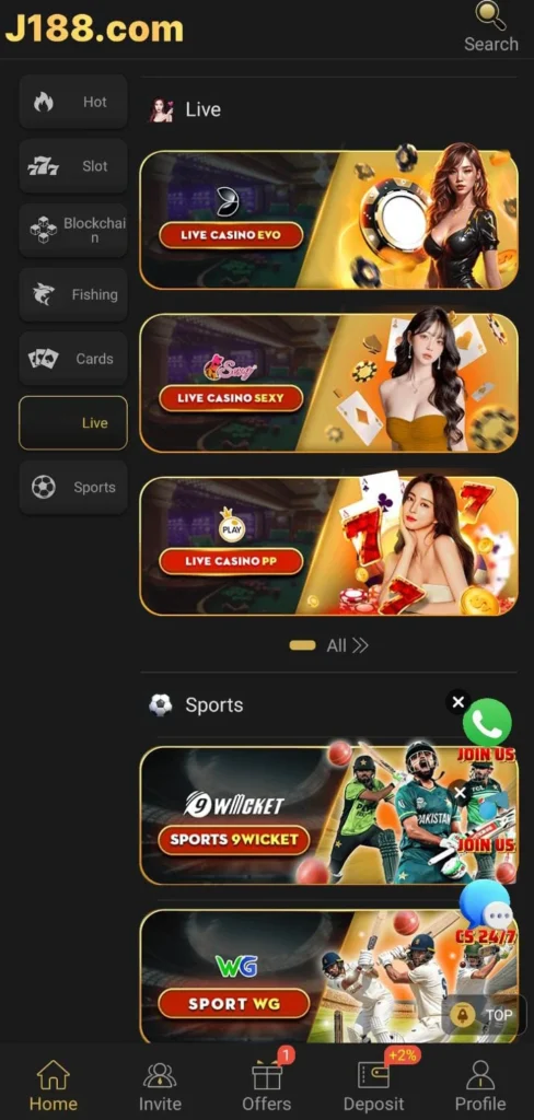 Sports and live games add extra excitement to the J188 Game experience. Players can place bets on popular sports events, including major cricket tournaments like the Asia Cup, and support teams such as Pakistan, India, Bangladesh, or Sri Lanka. Users with good sports knowledge can make smart predictions and earn rewards. The platform also offers betting options for football and other sports, making live gameplay more thrilling and interactive.
