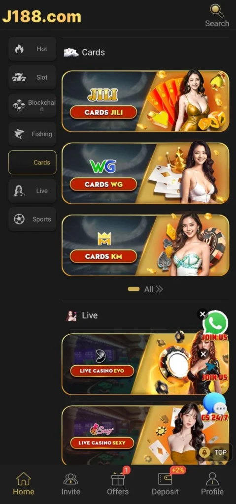 J188 Game gives players access to multiple gaming categories in one app. From skill-based card games to luck-based slots and live betting options, the platform keeps all types of gamers engaged